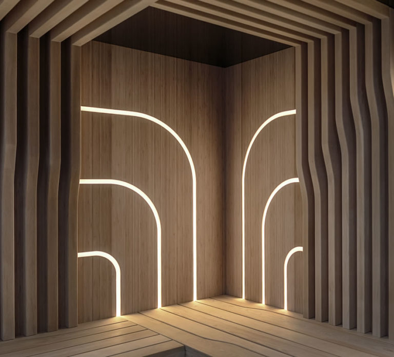 Salon, cuisine, salle de bain, sauna, piscine, tête de lit, escalier (bois, métal, verre), dans mur de placo, vitrine de magasin, mobilier d’agencement, bibliothèque, dressing, hôtel, restaurant, musée, des luminaires sur-mesure, etc…